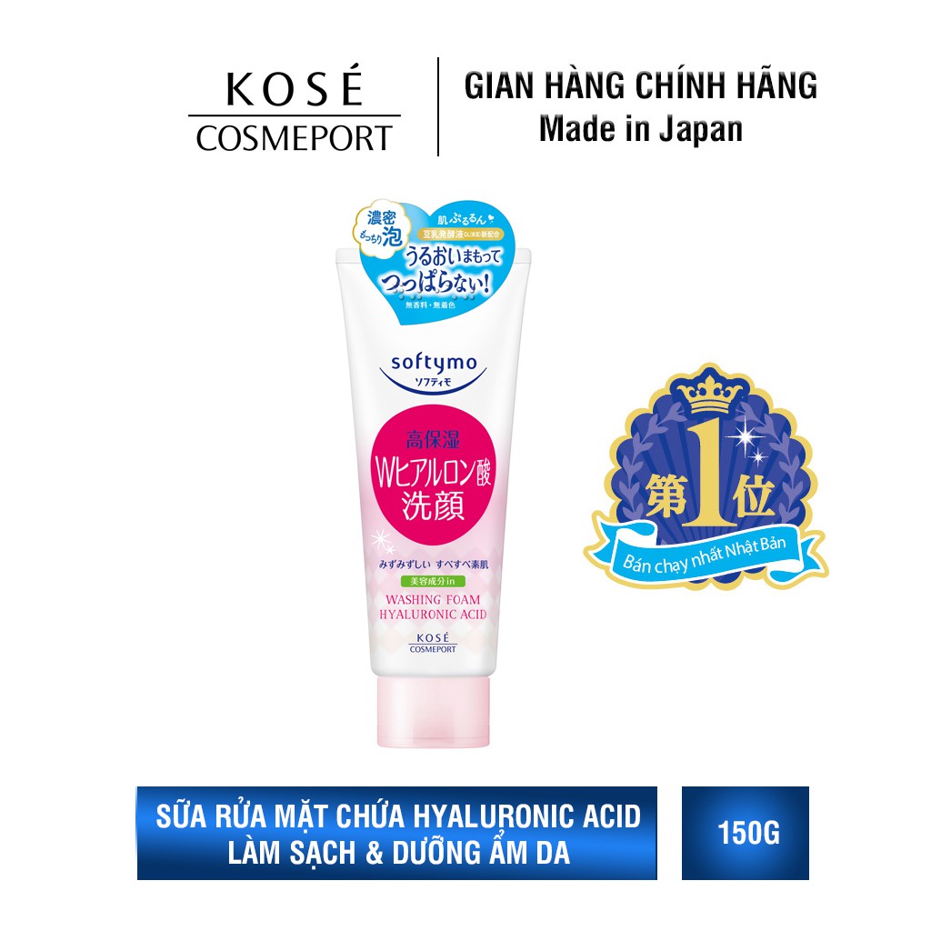 Sữa rửa mặt tạo bọt Kosé Cosmeport Softymo Washing Foam Hyaluronic Acid 150g