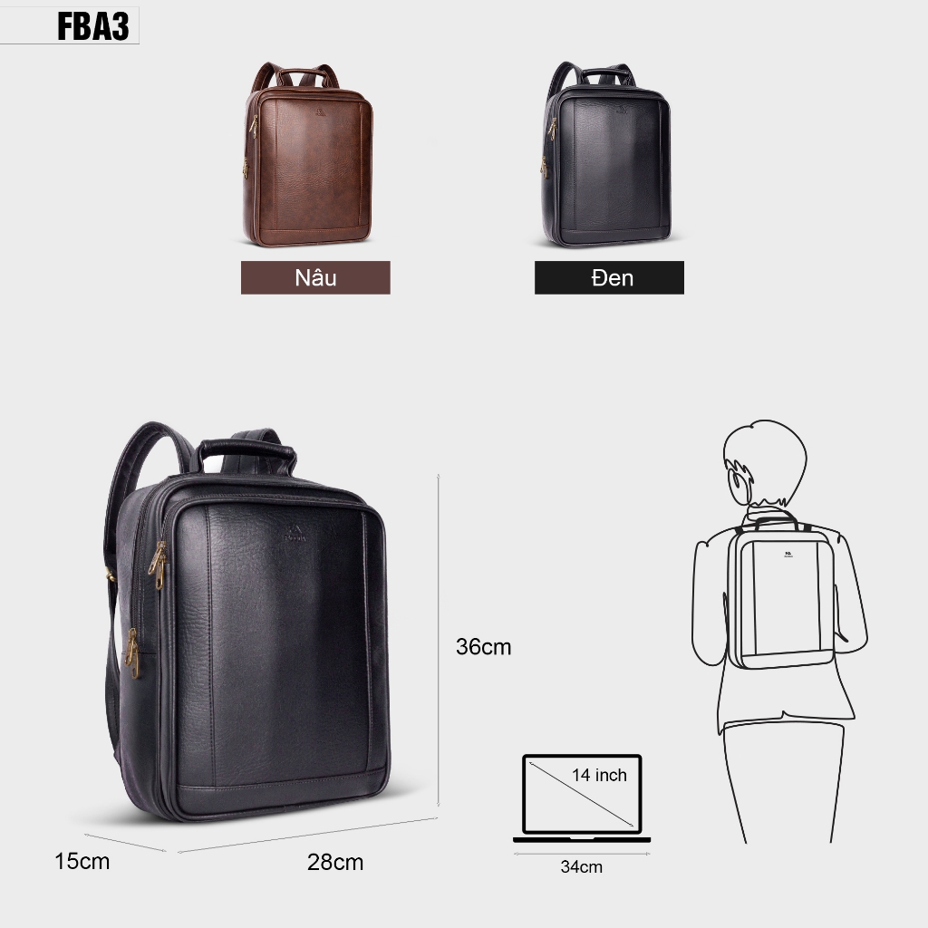 Balo công sở đựng laptop unisex FADODA FBA3
