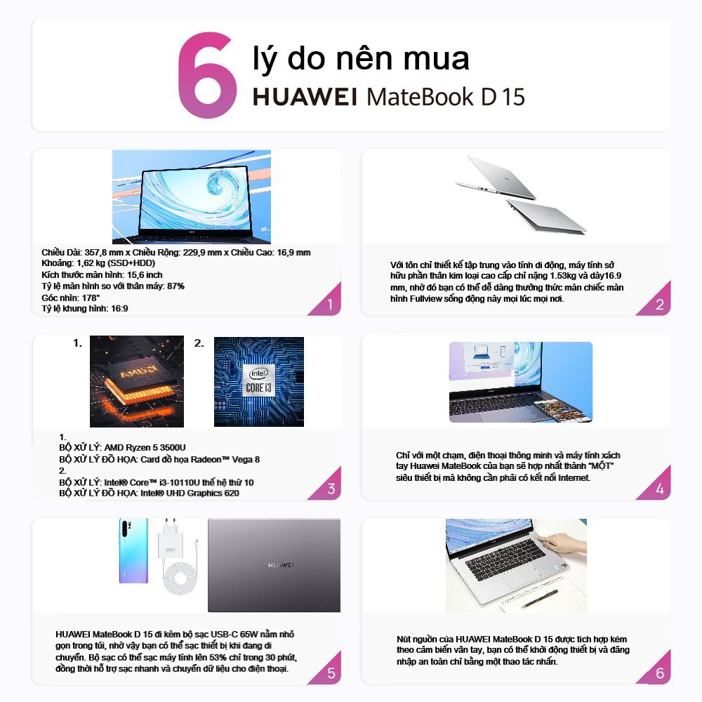 Laptop Huawei Matebook D15/Silver/15.6"HD Fullview/i3-10110U/8GB RAM/256SSD
