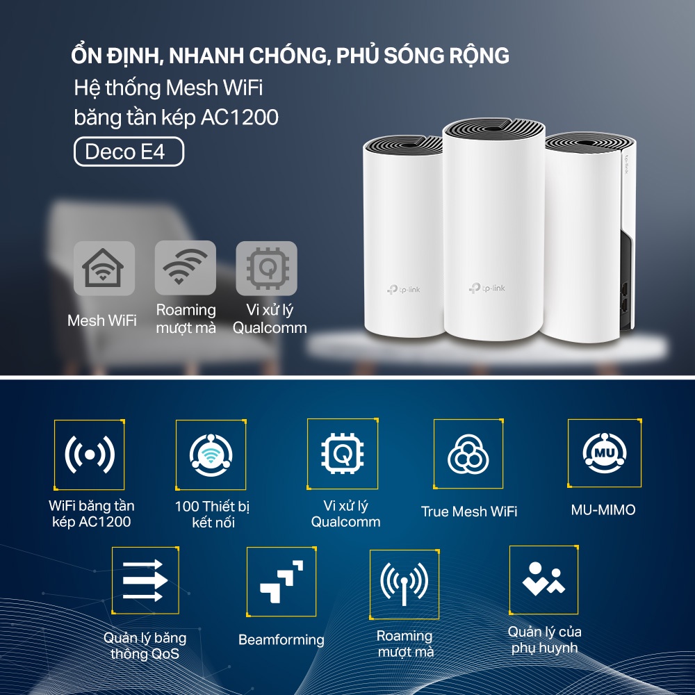 [Tốc Độ 1.9Gbps - Phủ sóng rộng] Hệ thống Wifi Mesh TP-Link Deco E4/M4/M5/S7/X10 - Chính Hãng TP-Link