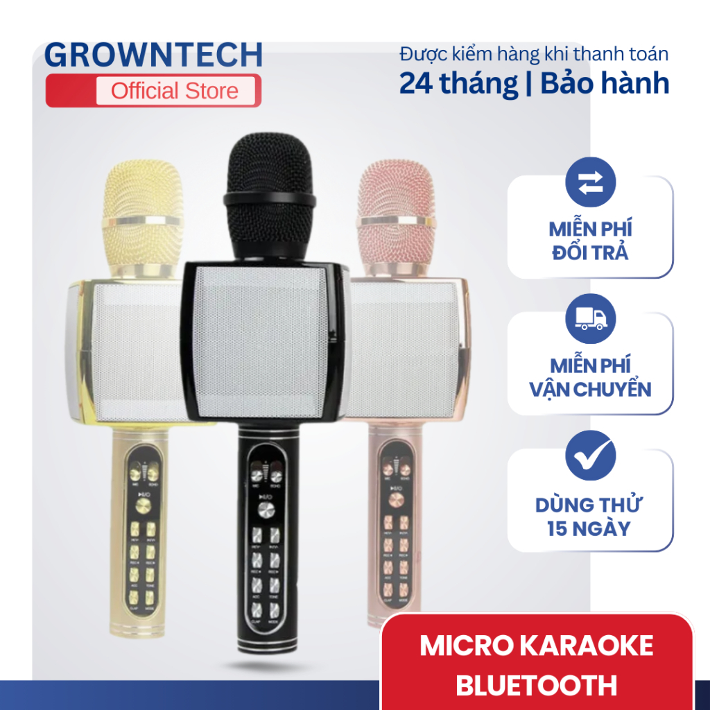 Micro karaoke bluetooth không dây nhỏ gọn sang trọng GrownTech YS 91 âm bass vang hỗ trợ thu âm
