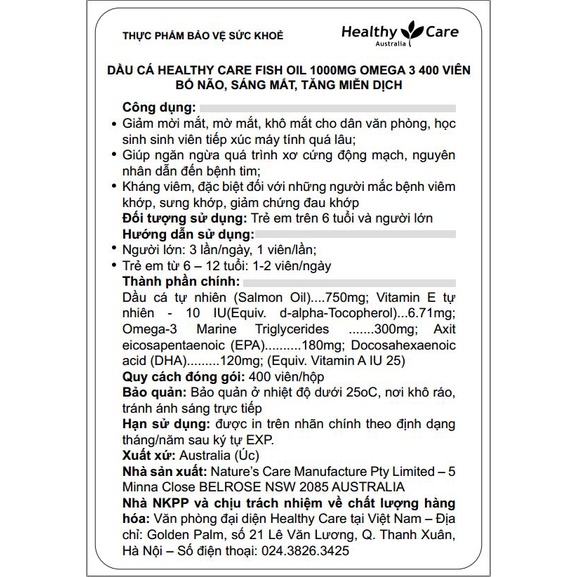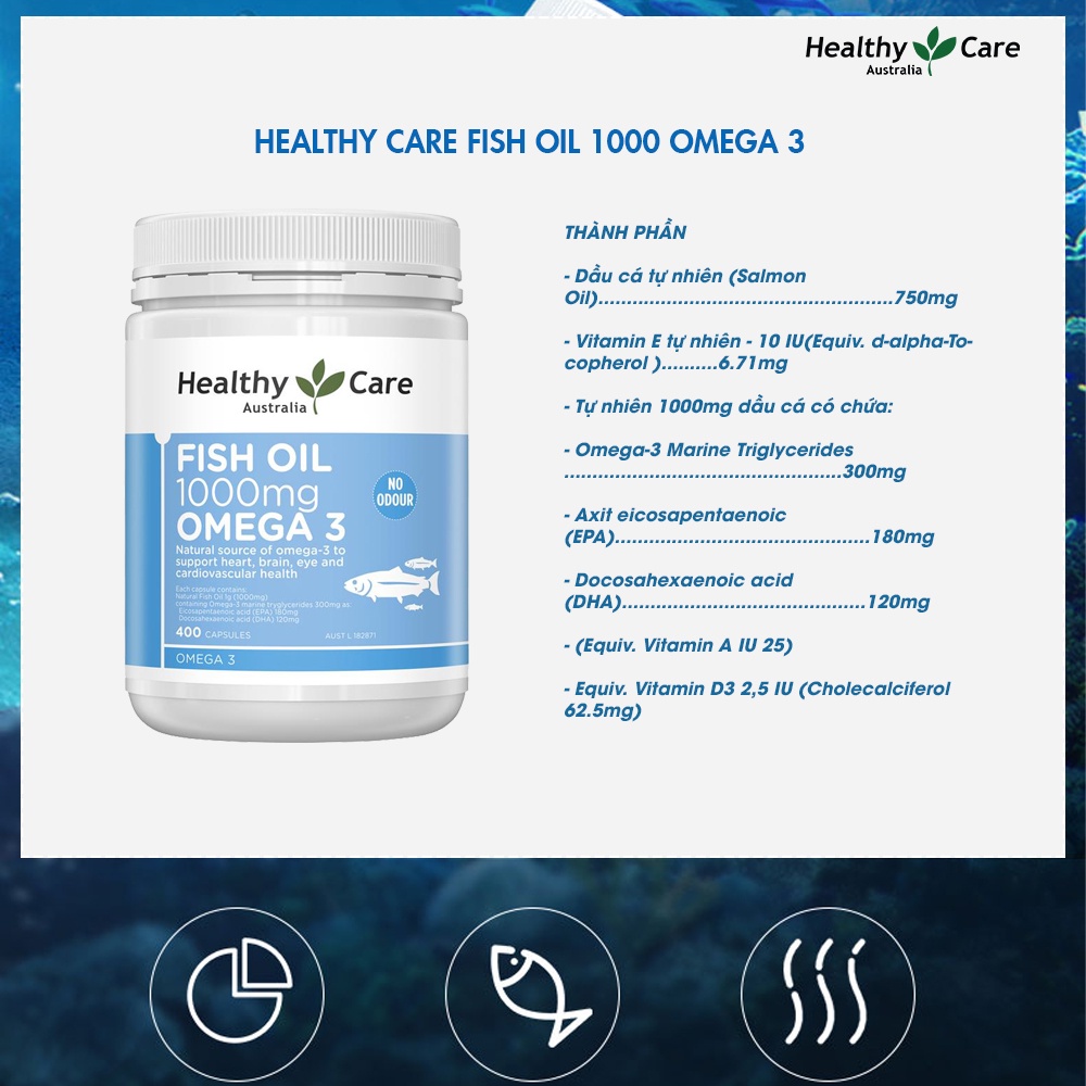 Viên uống dầu cá Omega 3 Healthy Care Fish Oil 400 viên