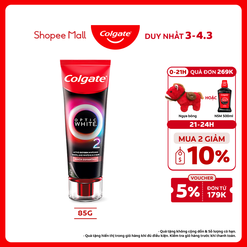 Kem Đánh Răng Colgate trắng răng TRONG 3 NGÀY Optic White O2 với Oxy Hoạt Tính 85g/ tuýp