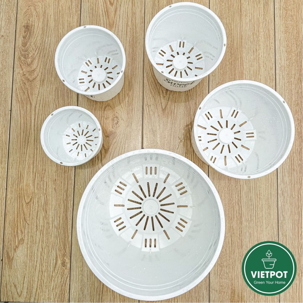 [Mã INBAU154 giảm 15K đơn 99K] Chậu nhựa trồng cây VIETPOT, màu trắng Montario, sân vườn, hoa.
