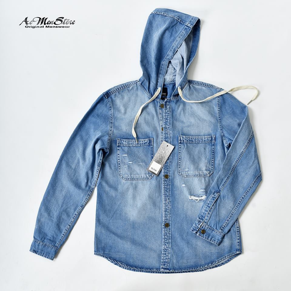 Áo sơ mi nam Denim wash xanh nhạt Routine