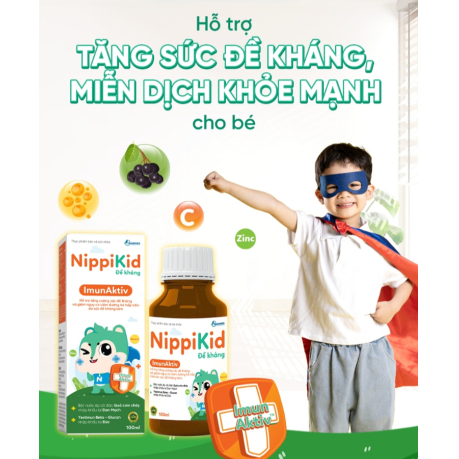Siro Tăng Đề Kháng, Ăn Ngon Cho Bé NippiKid - Hỗ trợ Tăng Đề Kháng Tự Nhiên, Bảo Về Đường Hô Hấp