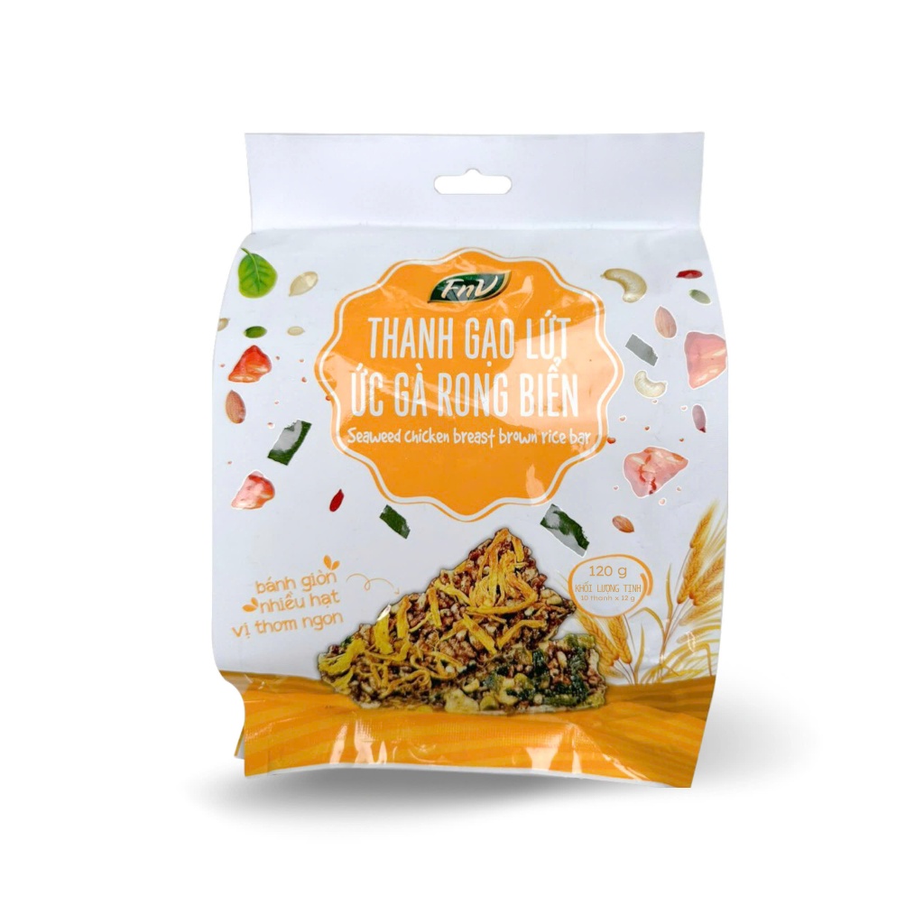 Combo 3 gói thanh gạo lứt rong biển ức gà ăn vặt không đường ít calo FNV 3 gói x 120g bánh hạt dành cho người tập gym