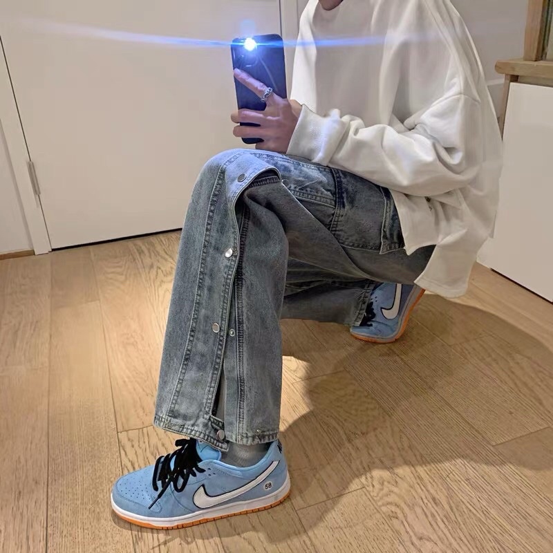 [ORDER+ẢNH THẬT] Quần bò jeans ống rộng túi hộp dáng suông cách điệu cúc bấm sườn Uzzang hiphop unisex siêu chất