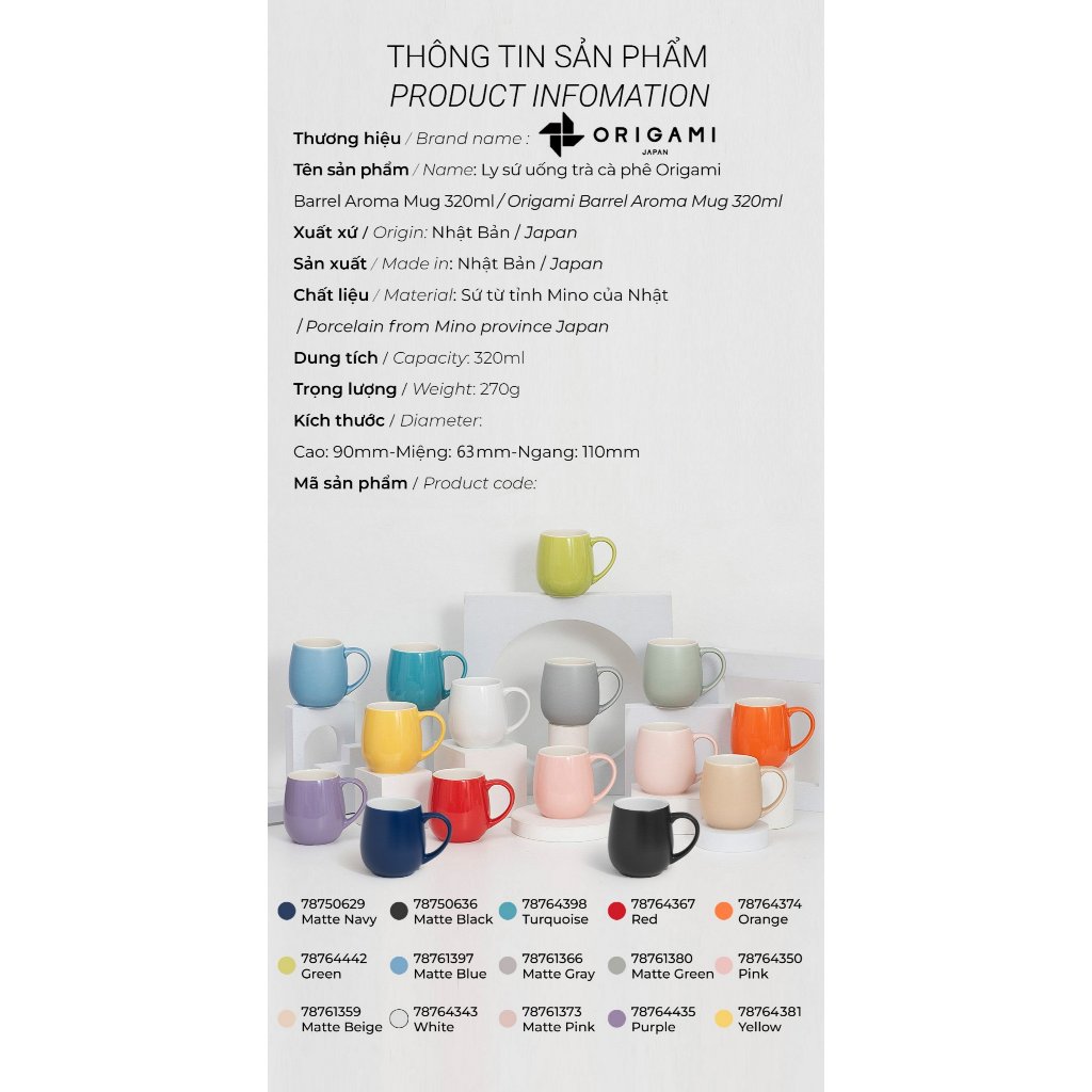 [ORIGAMI JAPAN] Volcano Ly sứ uống trà cà phê Origami Barrel Aroma Mug 320ml