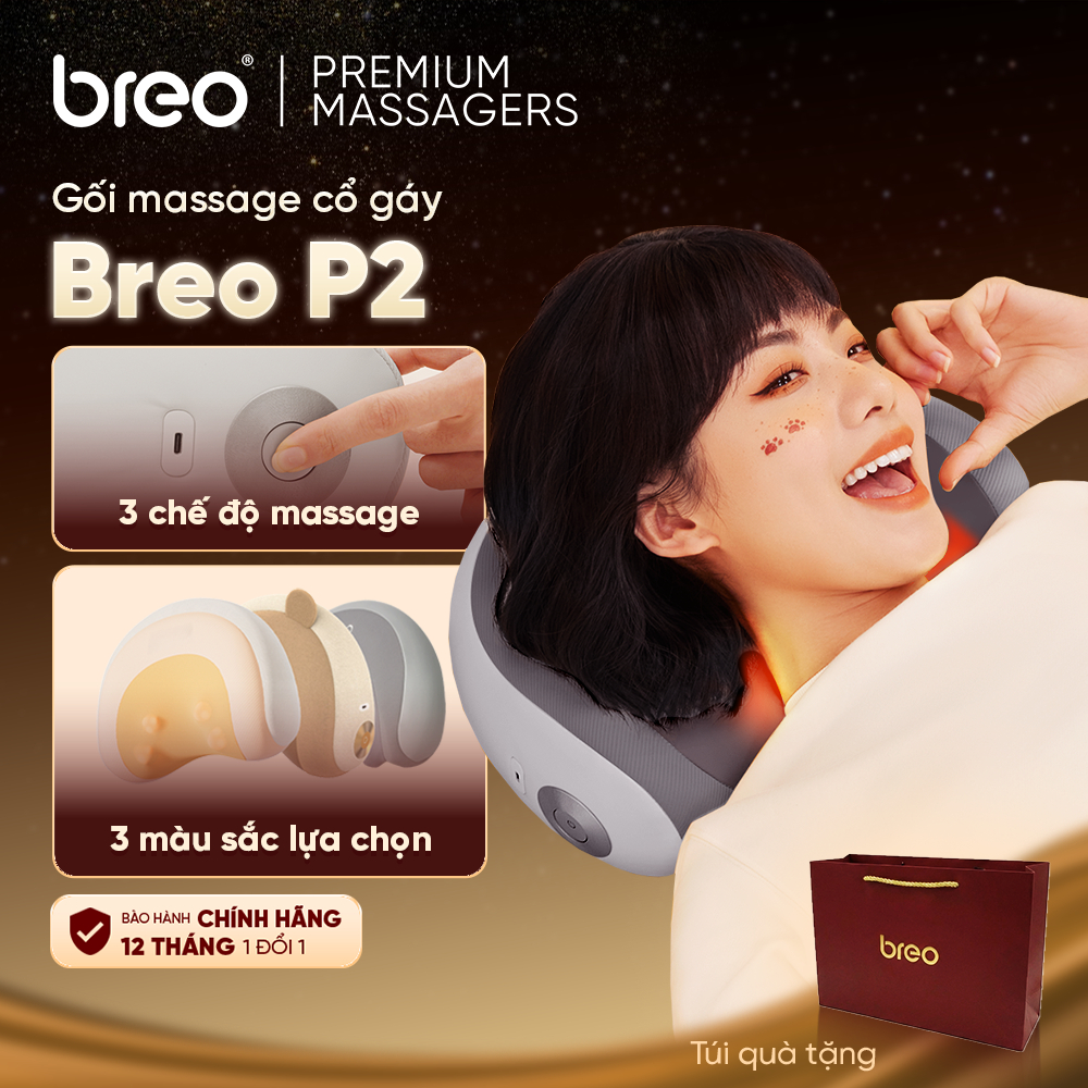 [CHÍNH HÃNG] Gối Massage Cổ Vai Gáy BREO P2 Cao Cấp - Êm Ái Không Gây Đau - Vỏ Gối Tháo Rời Dễ Vệ Sinh