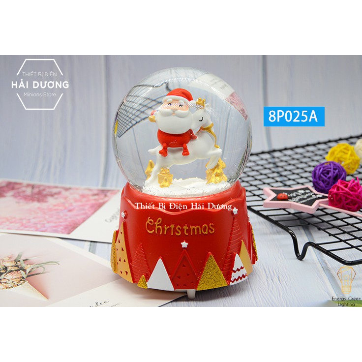 [Quà Tặng Giáng Sinh] 15 mẫu - Quả cầu tuyết phát nhạc ông già noel và chú tuần lộc tặng pin - Có video - Size to nhất