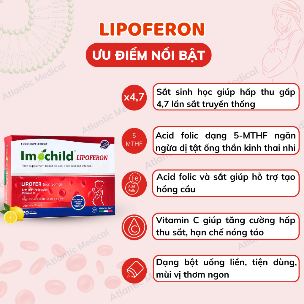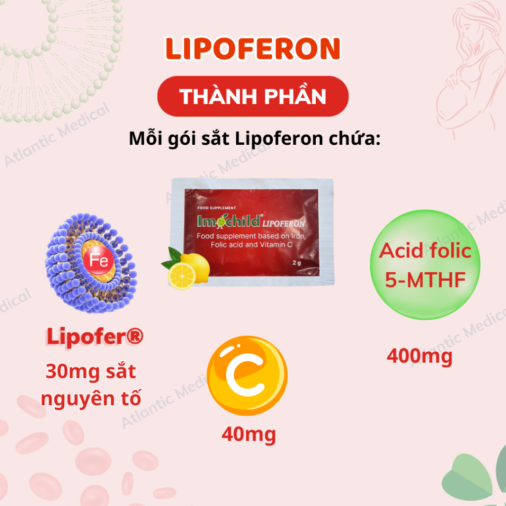 [Quà Xinh] Sắt Sinh Học IMOCHILD LIPOFERON Bổ Sung Sắt Liposome 5MTHF Vitamin C Cho Mẹ Bầu Sau Sinh Hộp 20 gói