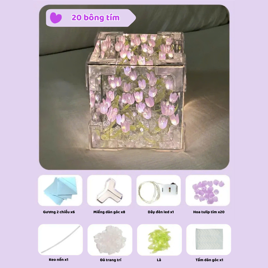 [Quà tặng] Hộp Đèn Hoa Tulip Handmade Làm Quà Tặng Ny, Quà Sinh Nhật, Quà Tặng Bạn Bè, Đèn Ngủ Hoa Tulip
