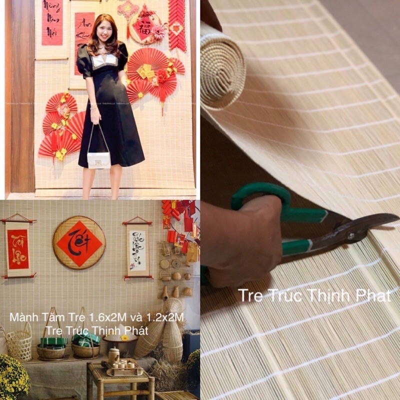 Mành tre trang tri Tết và decor tiểu cảnh Tết. Phông nền mành tre chụp hình.