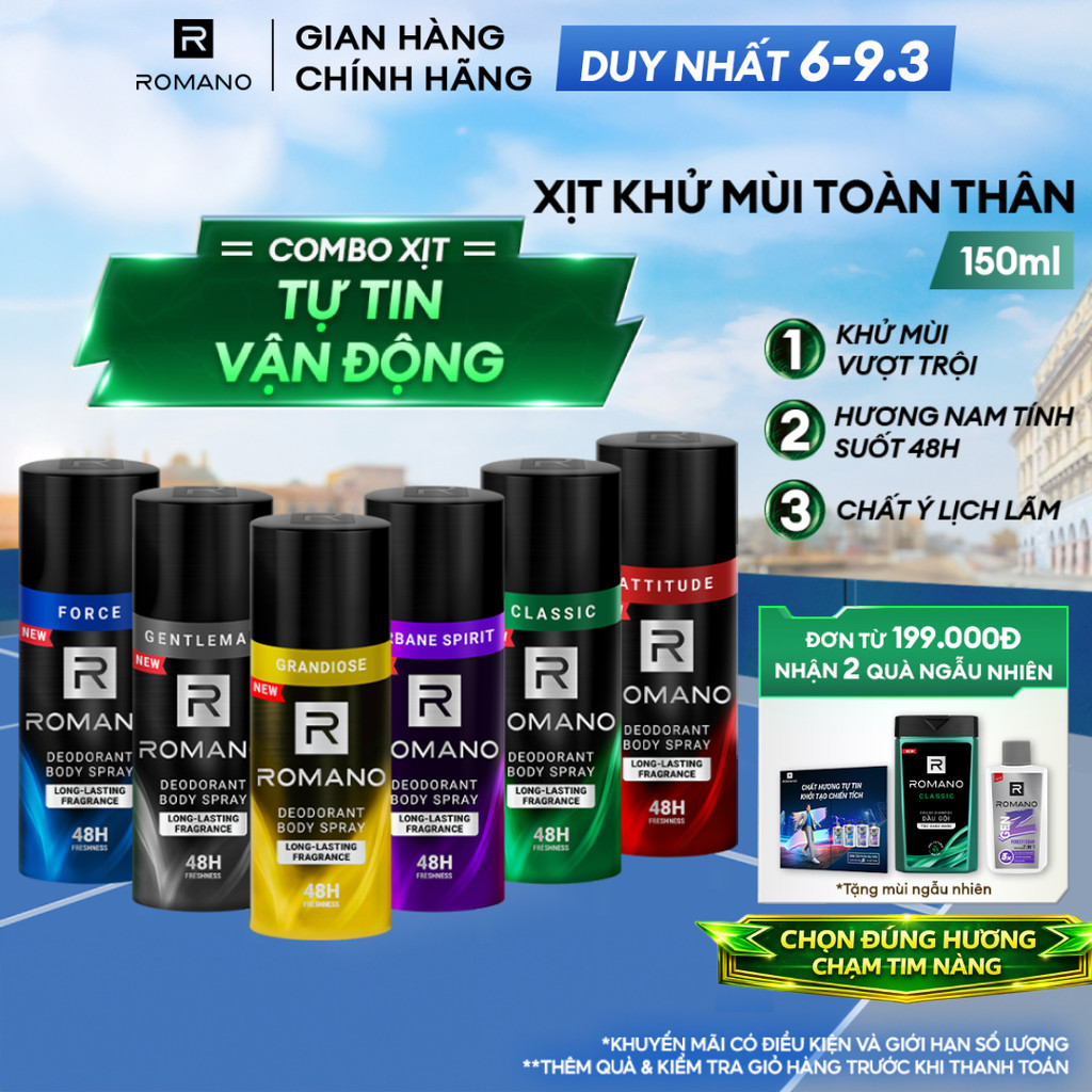Xịt khử mùi cho nam toàn thân ngăn mồ hôi và mùi cơ thể Romano 150ml / 195ml