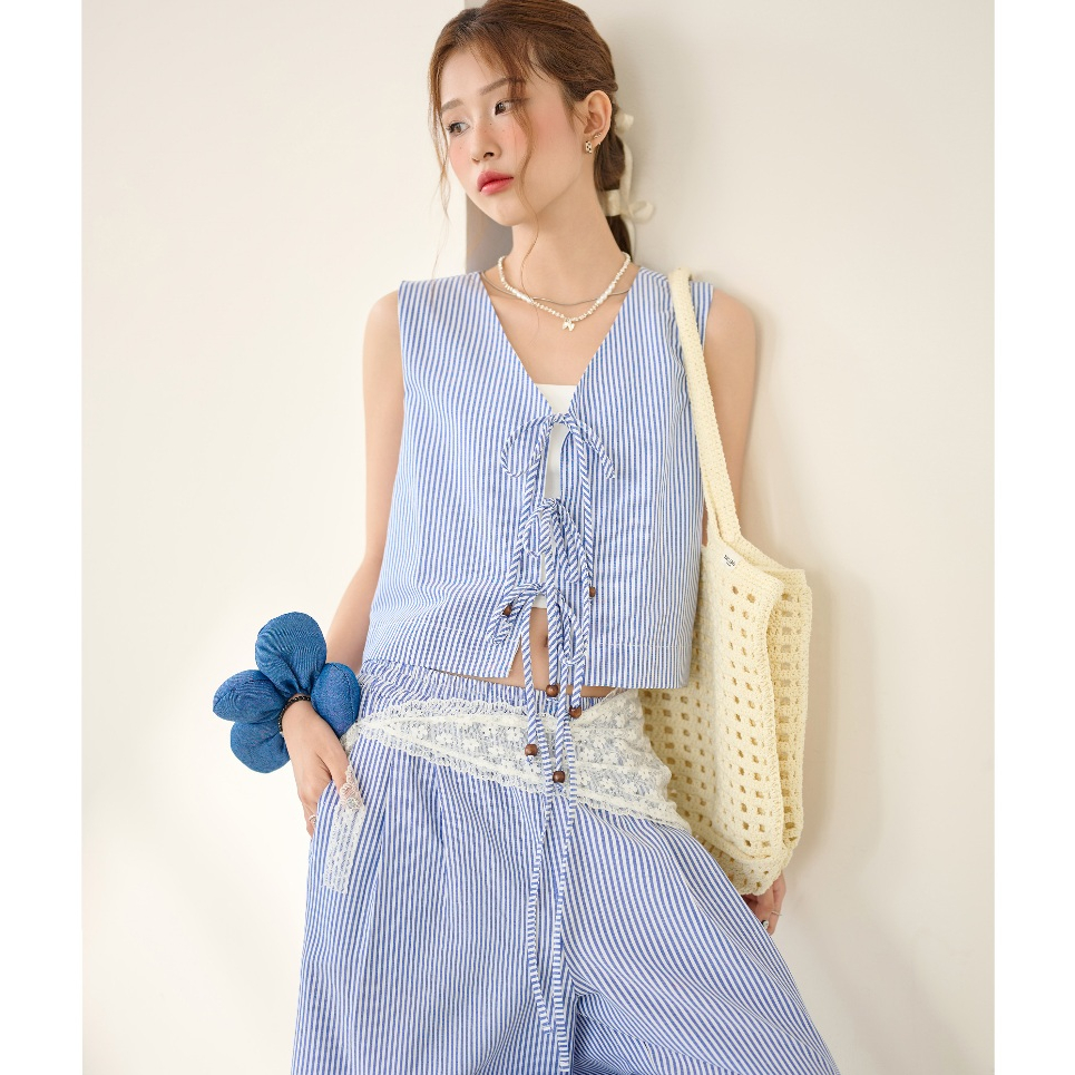 [Sandy Set] Áo gile 2 lớp vải oxford | Quần suông ống rộng cạp chun - 𝒃𝒚 𝑼.𝒇𝒐𝒖𝒏𝒅