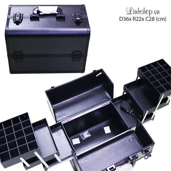[Size lớn] Cốp đựng đồ trang điểm chuyên nghiệp bằng nhựa cao cấp chống nước màu đen LS3629 Linhshop