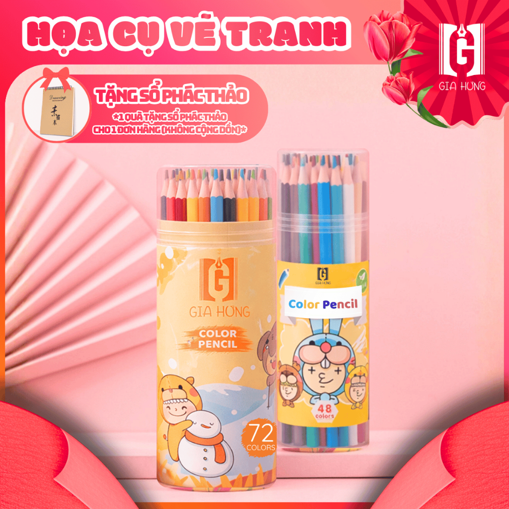 [TẶNG SỔ] Hộp Bút Chì Màu 48/72 Màu Sắc Đa Dạng Cho Bé Sáng Tạo Nghê Thuật, Vẽ Tranh Hội Họa