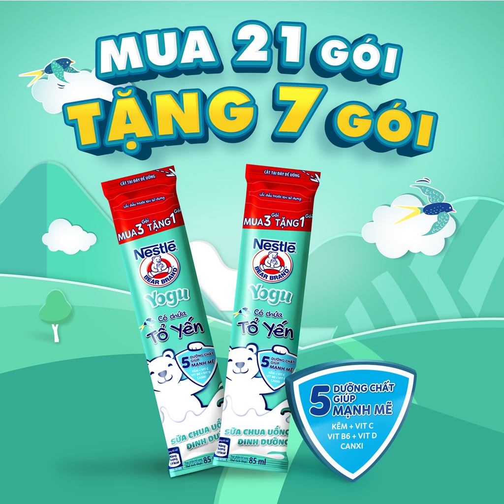 [Tặng 7 gói khi mua 21 gói] Thùng 28 gói sữa chua tổ Yến Nestlé Yogu 28x85ml