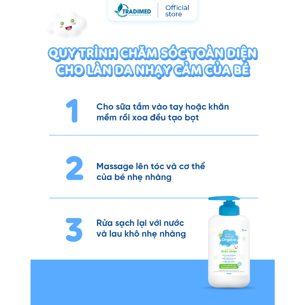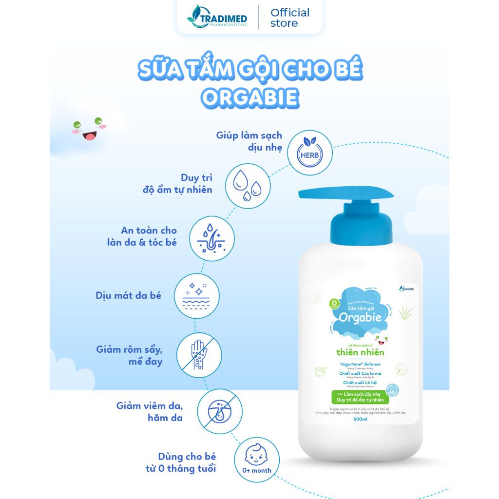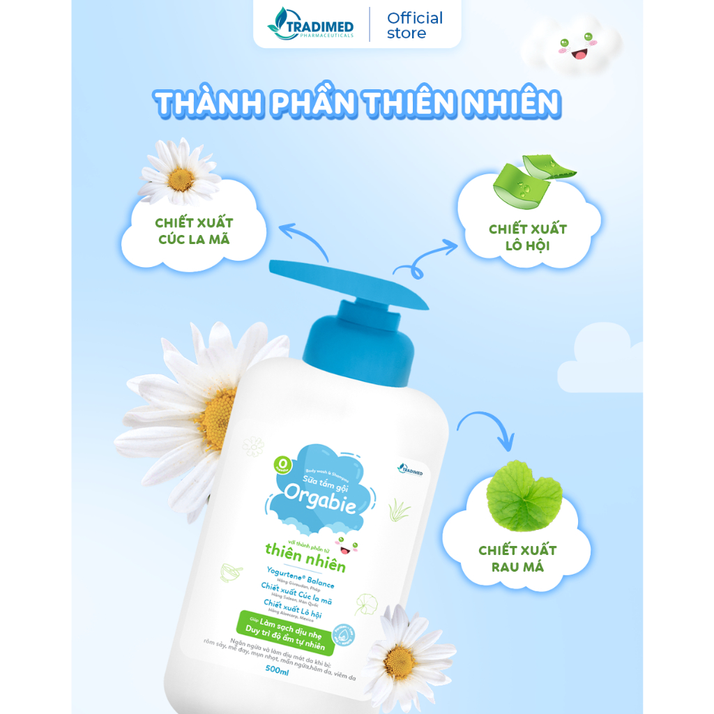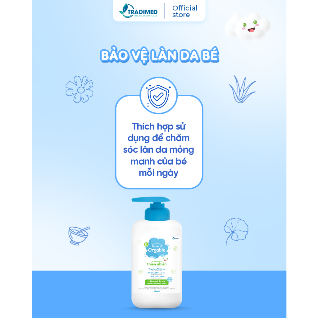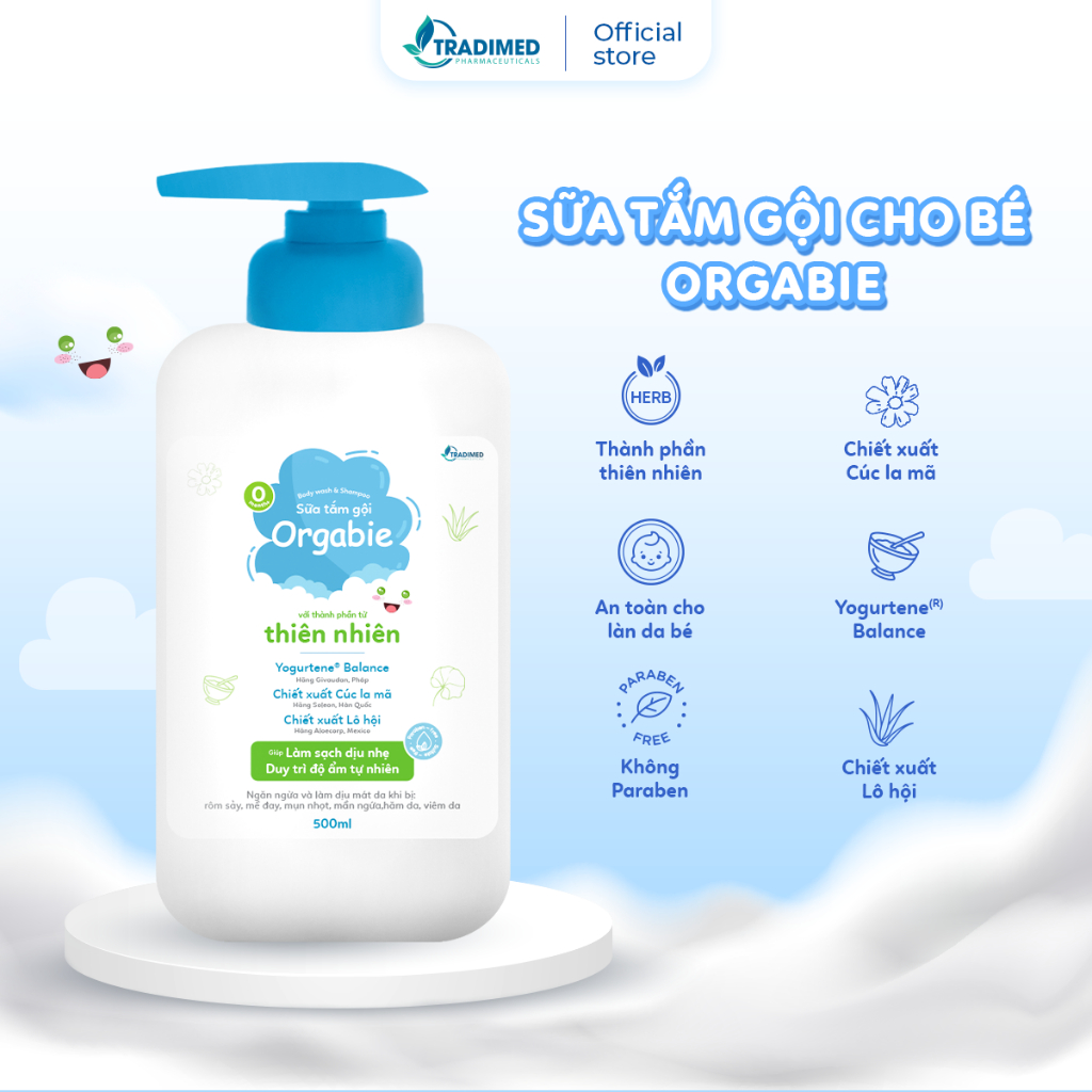 Sữa Tắm Gội Orgabie, Thành Phần Thiên Nhiên, Làm Sạch Dịu Nhẹ, An Toàn Cho Làn Da Bé