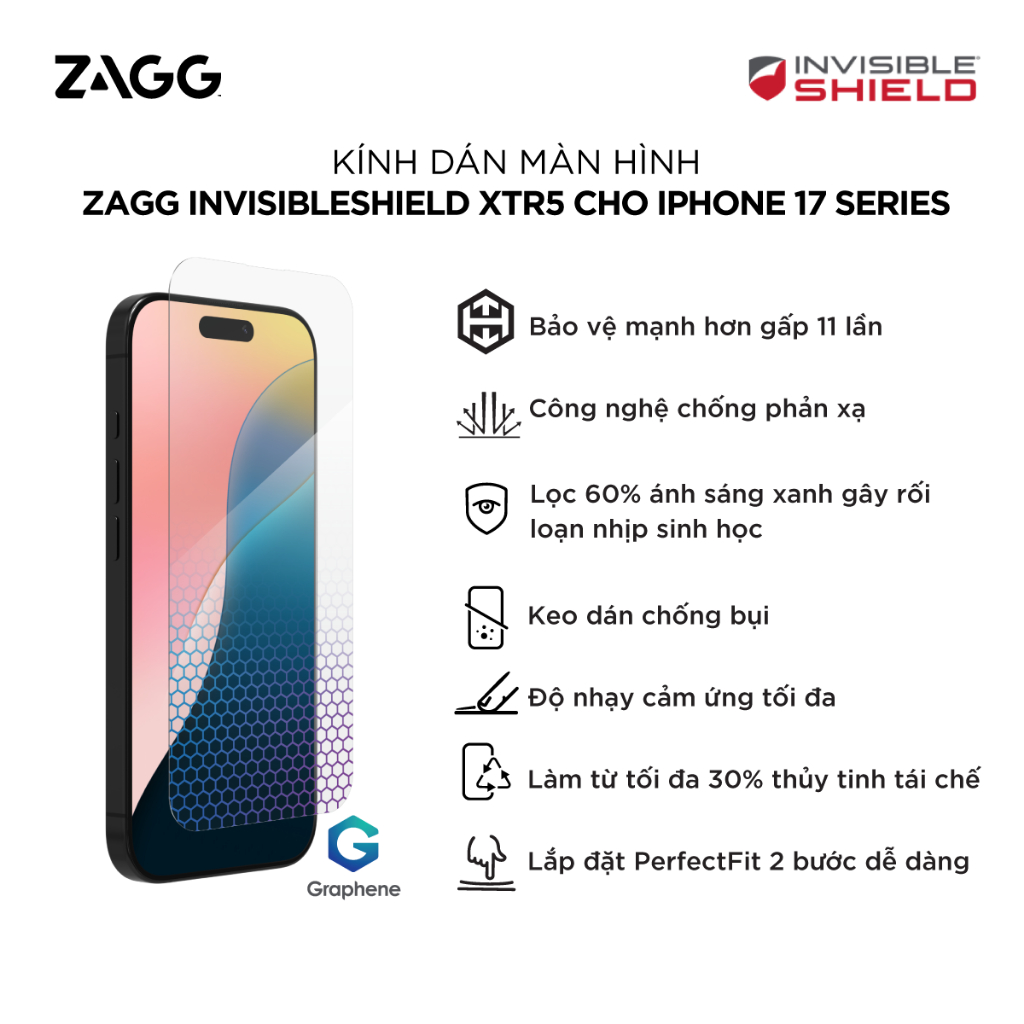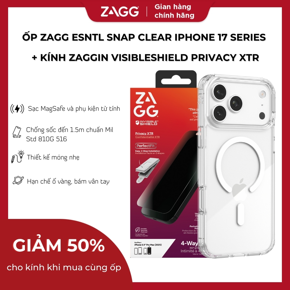 [iPhone 17 Series] Kính cường lực ZAGG trong suốt, chống nhìn trộm, chống ánh sáng xanh, XTR có khay tự dán