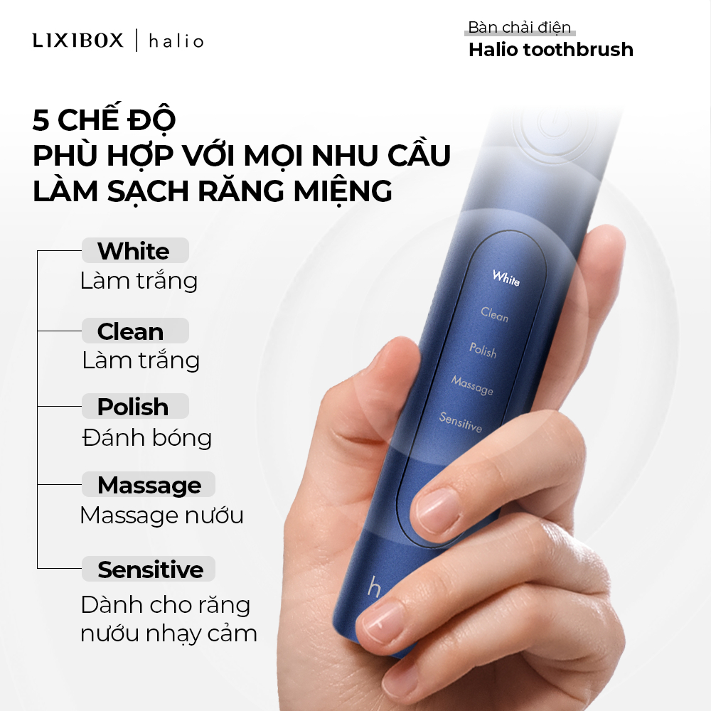 Bàn Chải Điện Làm Trắng Răng Halio Sonic Whitening Electric Toothbrush PRO Kèm Hộp Đựng