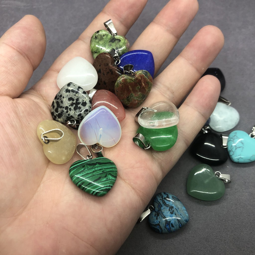 0.6 * 2cm Mặt dây chuyền tình yêu Đá tự nhiên Poppy Jasper Opal Mã não pha lê trắng ❈ ✲ ❈