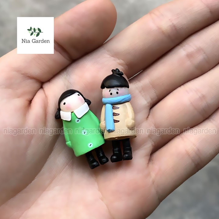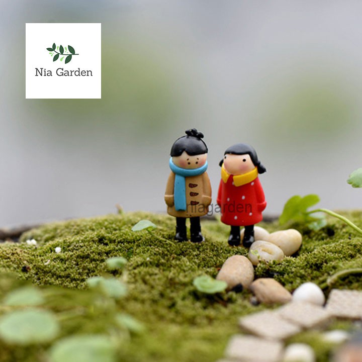 (1 cặp) Trang trí tiểu cảnh mô hình cặp đôi búp bê mùa đông - N5