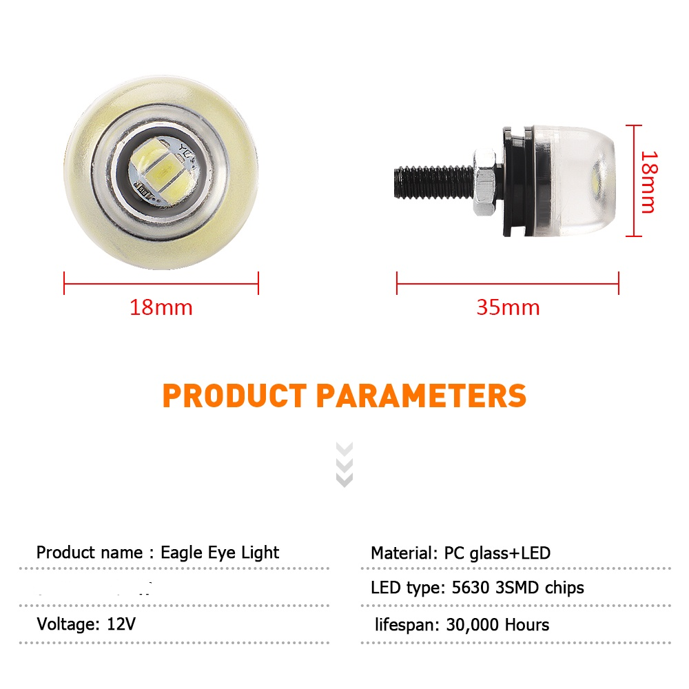 Đèn LED mắt đại bàng chống nước 12V 18mm cho xe hơi, xe máy, đèn sương mù, xi nhan.