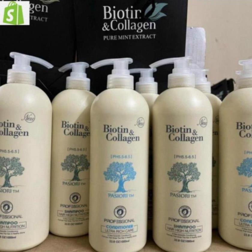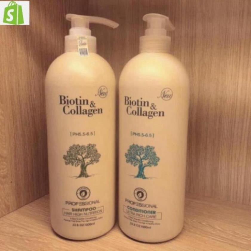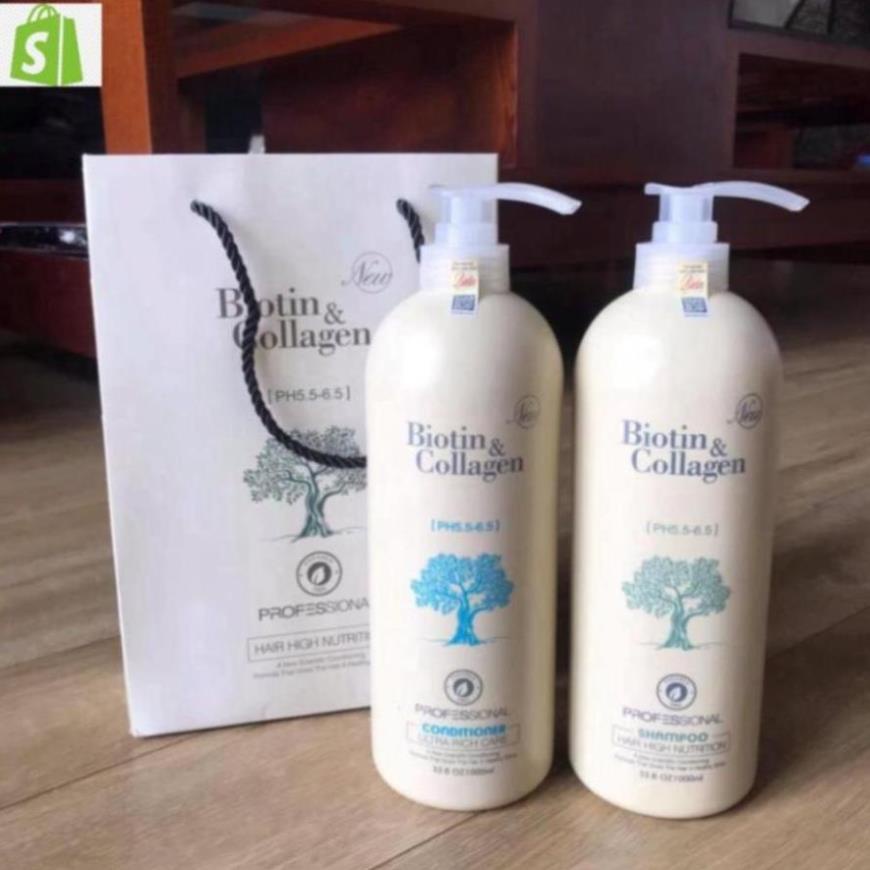 Cặp Dầu Gội Biotin Collagen Trắng 1000ml , Combo Gội Xả Biotin Ngăn Rụng Tóc Dưỡng Tóc