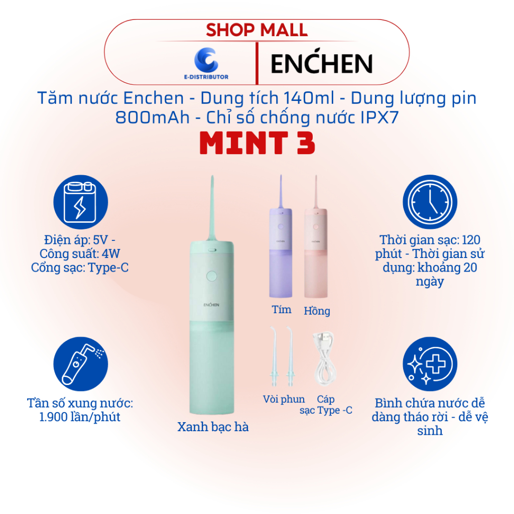 [HỎA TỐC] Máy tăm nước Enchen Mint 3 - Dung tích 140ml - Hàng chính hãng