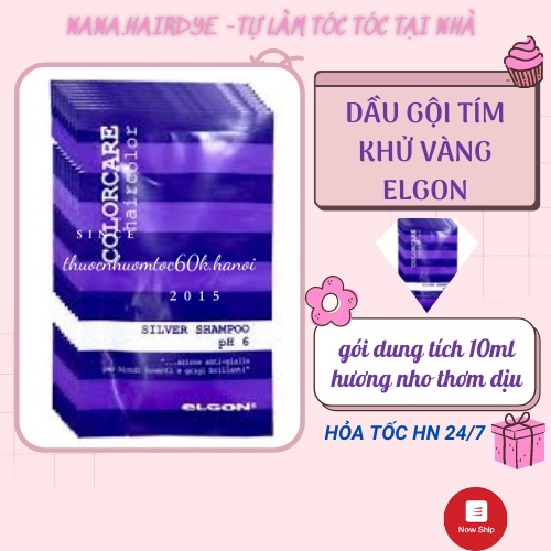 Gói dầu gội tím khử vàng tóc tẩy, tóc bạch kim, tóc trắng Elgon Silver Shampoo 10ml