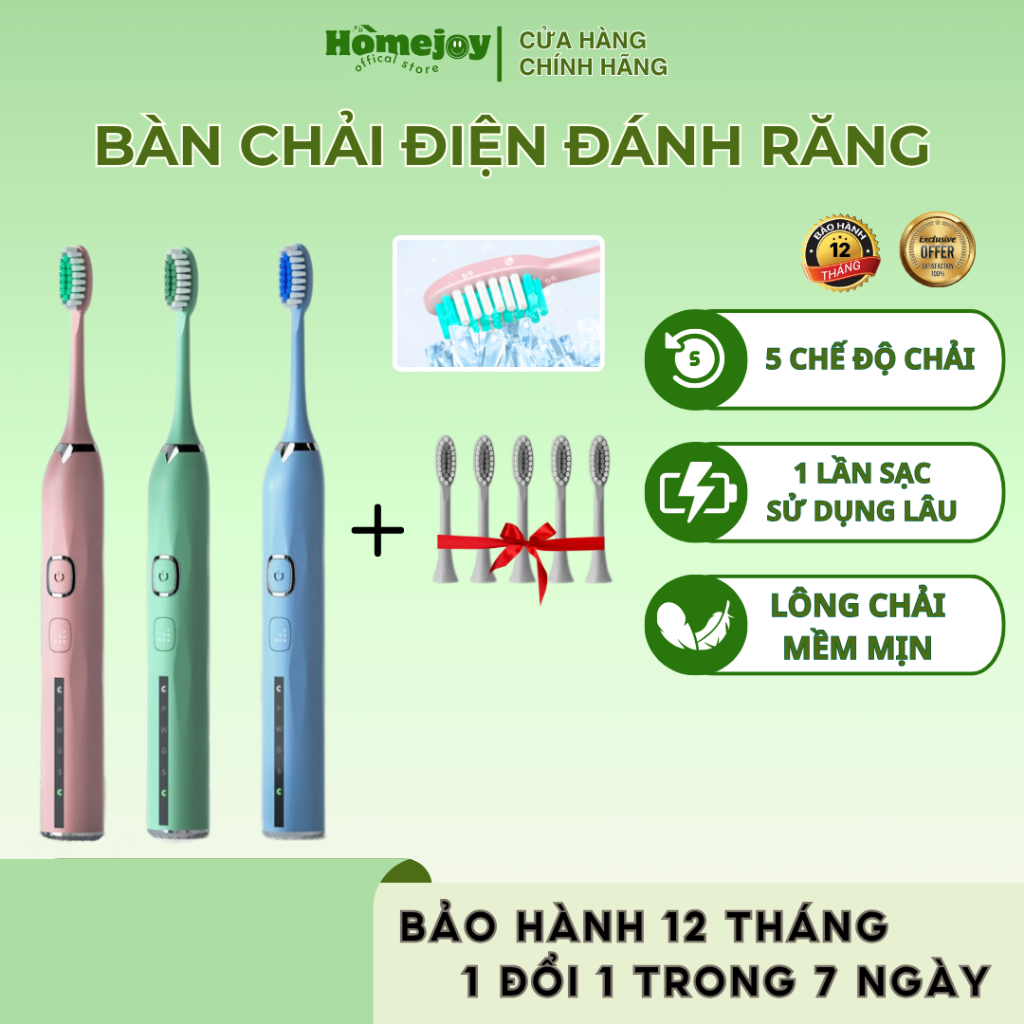 Bàn chải điện đa năng DELADEP, máy đánh răng dùng sóng âm tần số cao , tích hợp công nghệ giảm ồn, pin trâu BCD07
