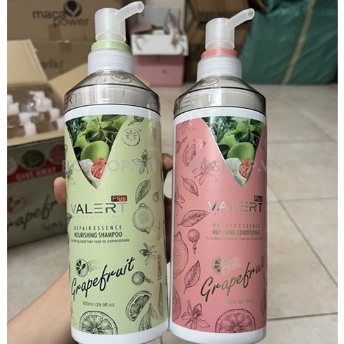 Dầu gội xả bưởi VALERT GRAPEFRUIT 850ml tặng xịt bưởi VITALYCIL phục hồi, chống rụng kích mọc tóc