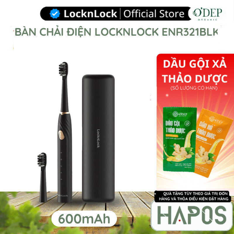 Bàn chải điện LocknLock ENR321BLK Chính hãng, 5 chế độ, dung lượng pin 600mAh, kèm 2 đầu bàn chải - HAPOS BEAUTY