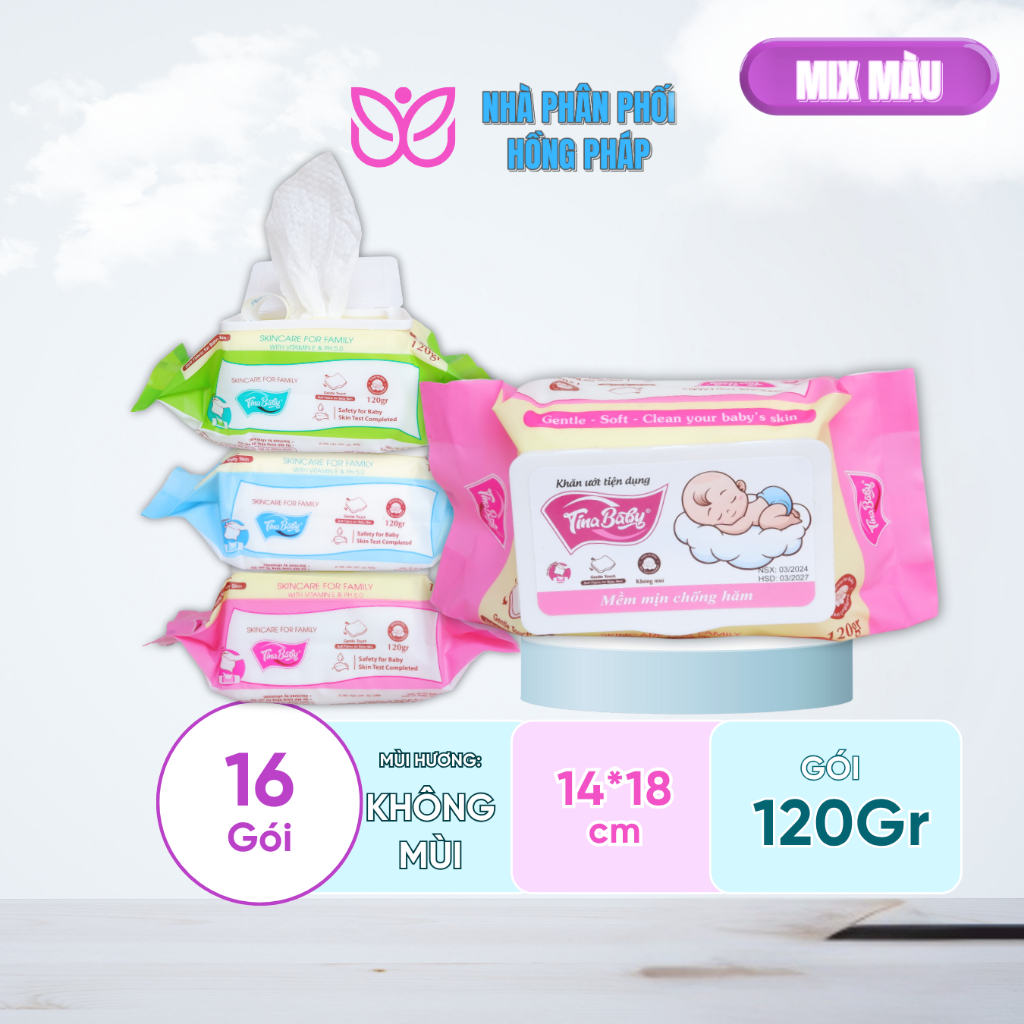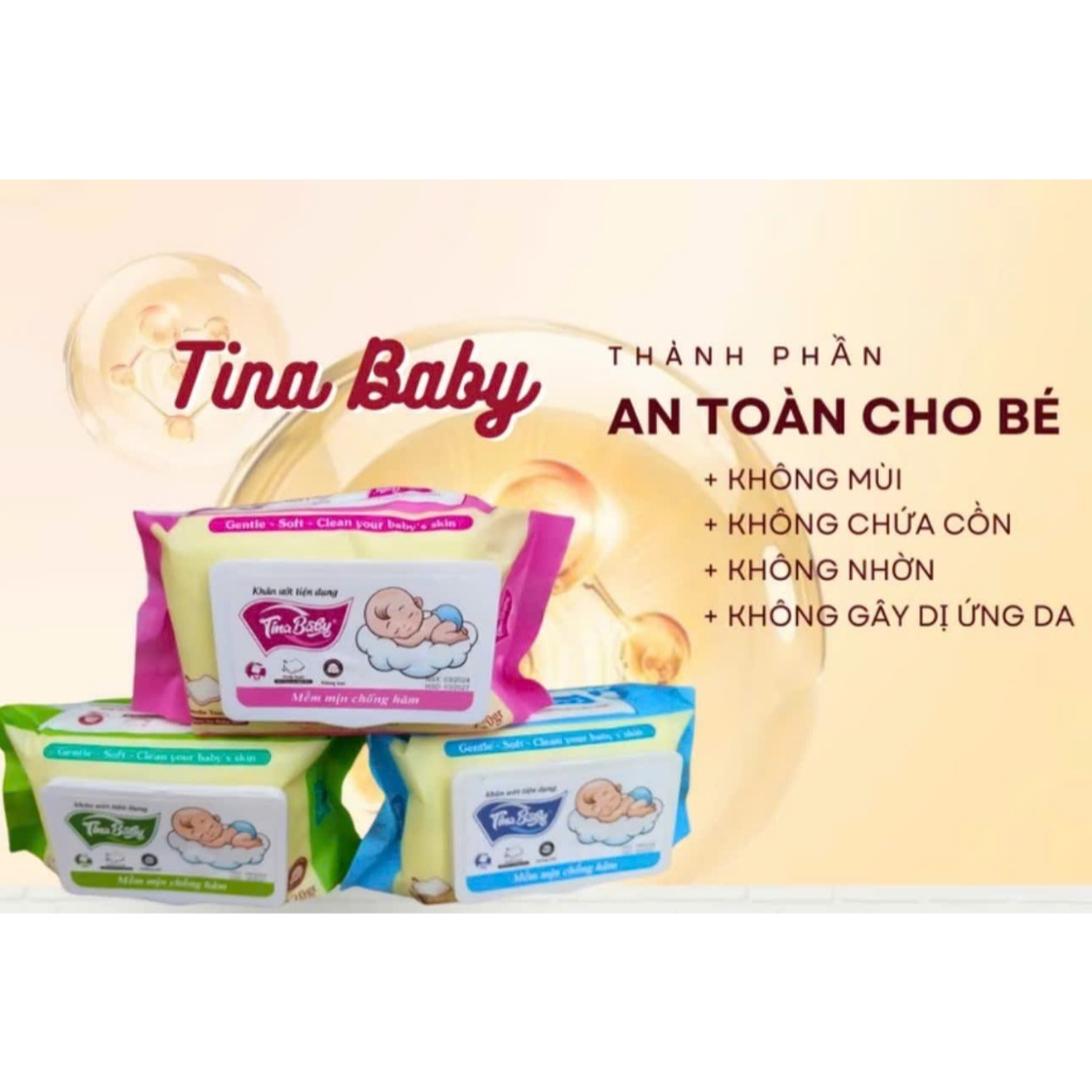 Thùng 32 Gói Khăn Ướt Em Bé Không Mùi TINA BABY 120Gram An Toàn Cho Da Nhạy Cảm