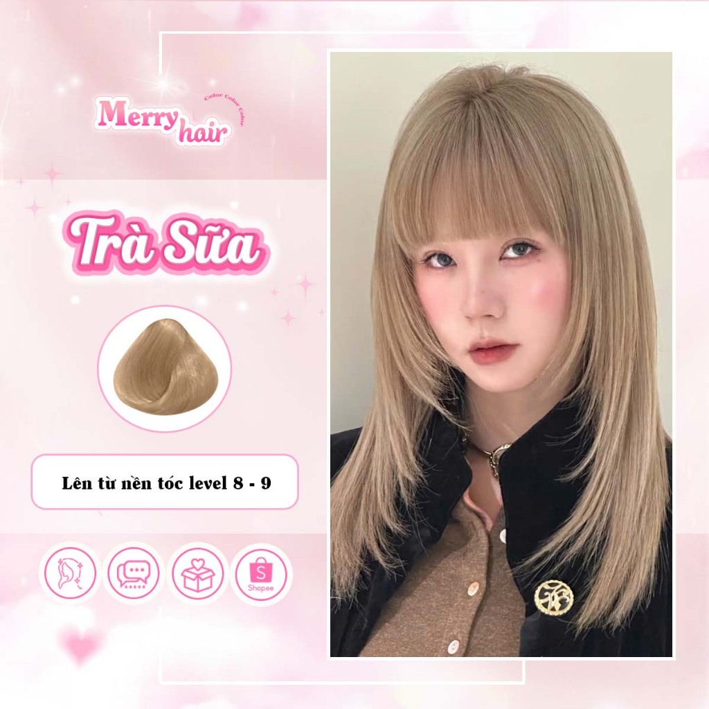 Thuốc nhuộm tóc, Thuốc nhuộm tóc màu NÂU TRÀ SỮA, Cần Tẩy, MERRY HAIR, tặng kèm oxy trợ dưỡng và bao tay