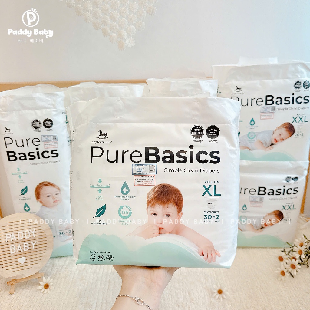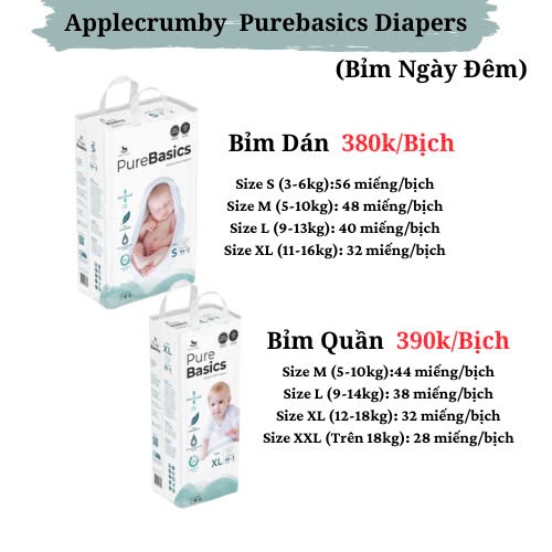 Tã/bỉm dán, quần Applecrumby Pure Basic cao cấp đủ size cho bé tư sơ sinh (1 bịch)