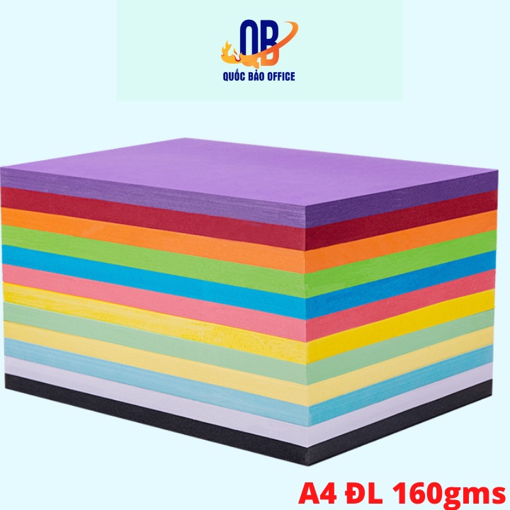 100 tờ bìa màu cứng làm đồ hanmade , đóng tập sổ, đồ thủ công, thiệp khổ A4 - Định lượng 160gsm có nhiều màu