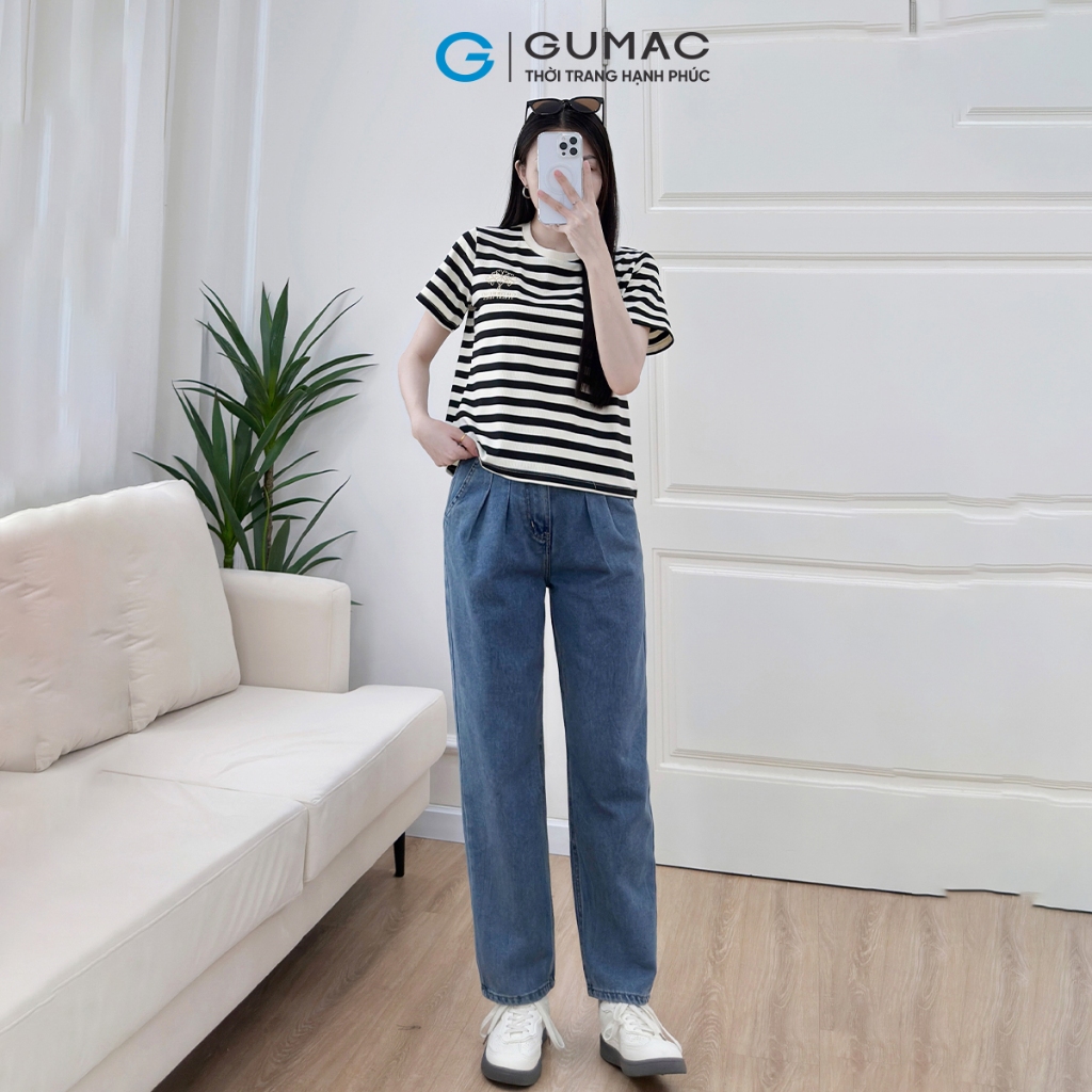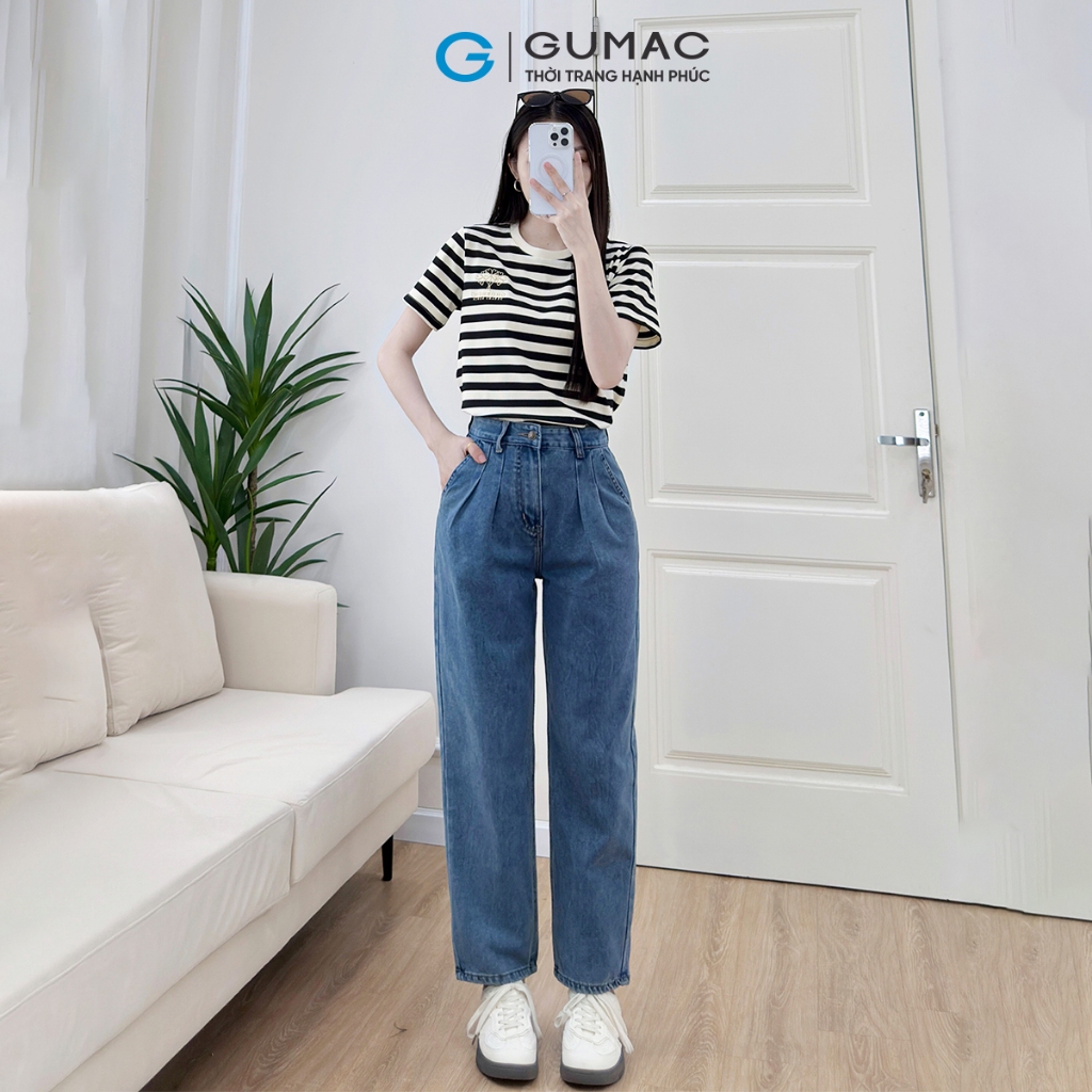Quần jeans nữ GUMAC baggy ống vừa xếp ly jeans mềm dày dặn thoải mái LQJE1022