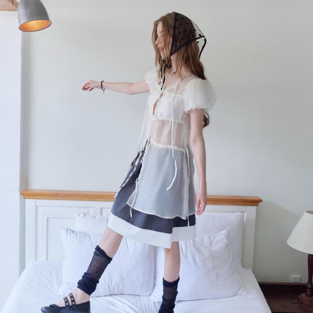 (Võ Hà Linh x Remmus) Katie Shirt| Áo blouse dài thiết kế chất liệu tơ xuyên thấu và kate tay bồng cho nữ