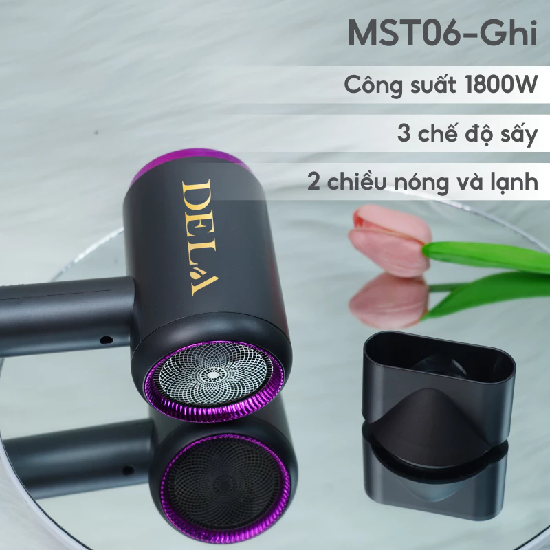 Máy sấy tóc DELADEP Công suất 1800W, tạo kiểu tóc chuyên nghiệp, 2 chiều nóng lạnh, 3 tốc độ sấy