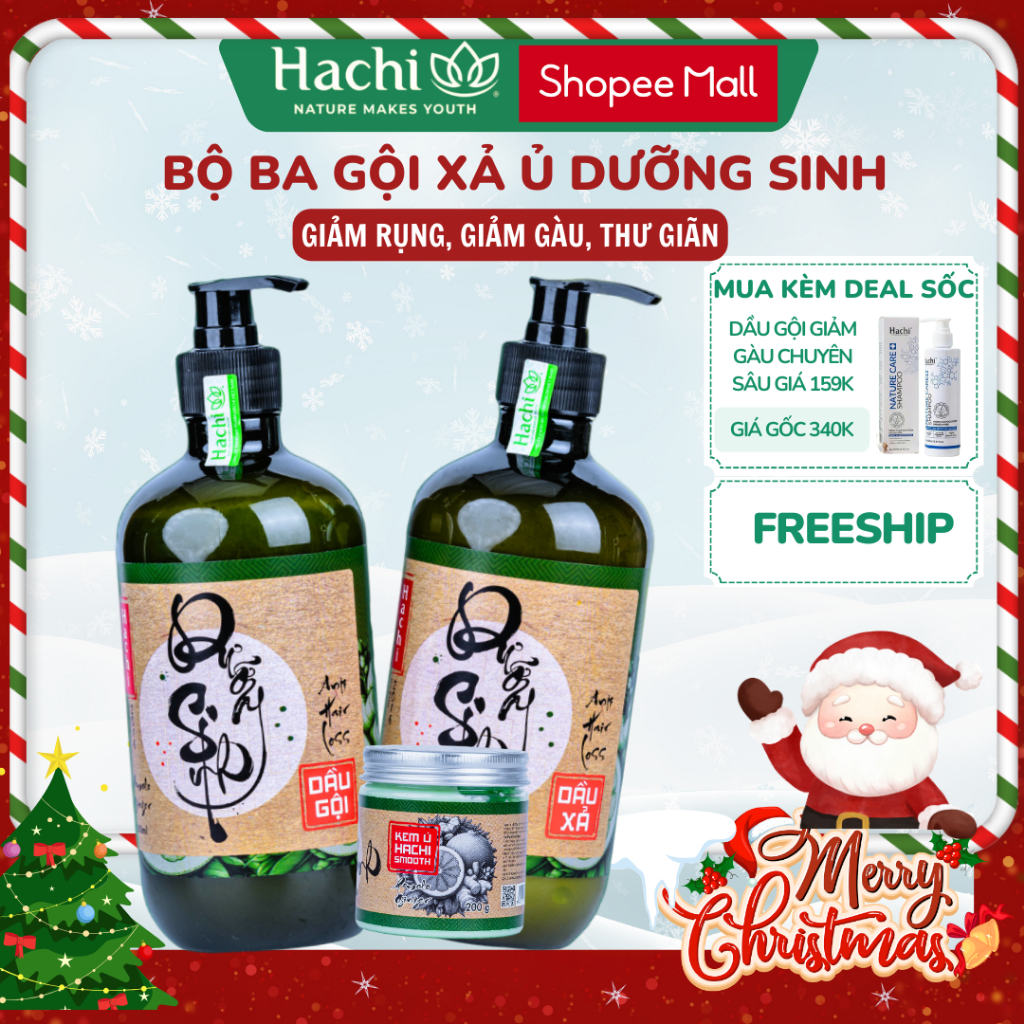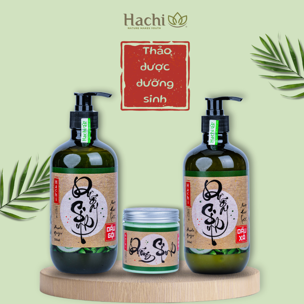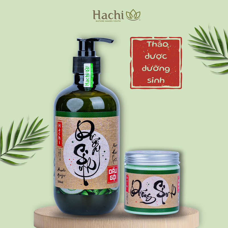 Combo gội xả ủ gừng sả bưởi thảo dược dưỡng sinh Hachi giúp hỗ trợ giảm rụng, giảm gàu, dầu bết