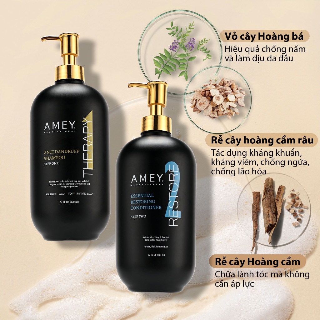 Dầu gội chống gàu giảm rụng cho tóc dầu bết thuần chay hương nước hoa Amey Anti Dandruff 800ml Chính hãng