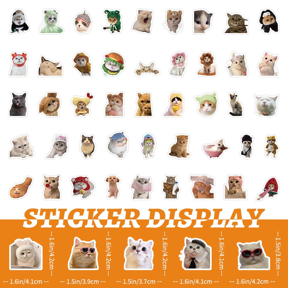 100 Miếng Dán Mèo Thực Tế - Đề Can Vinyl Chống Thấm Nước Cho Mũ Bảo Hiểm, Xe Đạp & Hộp Đựng Bút Chì (Hoạt Hình Dễ Thương)