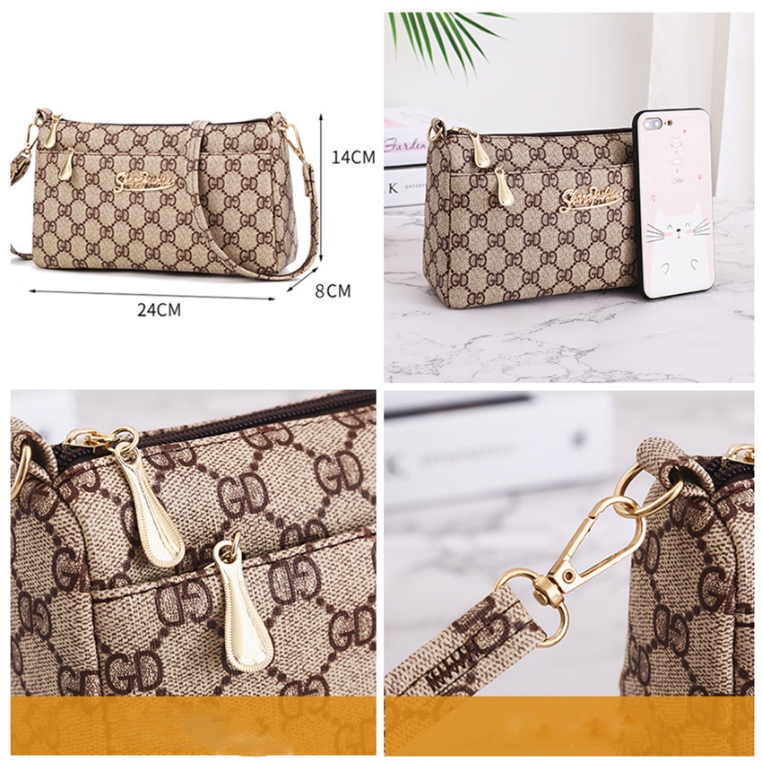 Túi xách nữ đeo chéo nhiều ngăn họa tiết thời trang thanh lịch