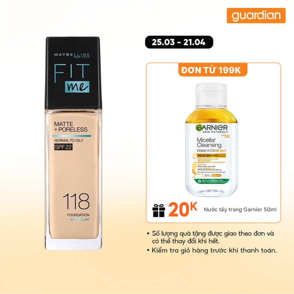 Kem Nền Mịn Nhẹ Kiềm Dầu Maybelline Fit Me Spf22 #118 Light Beige 30ml