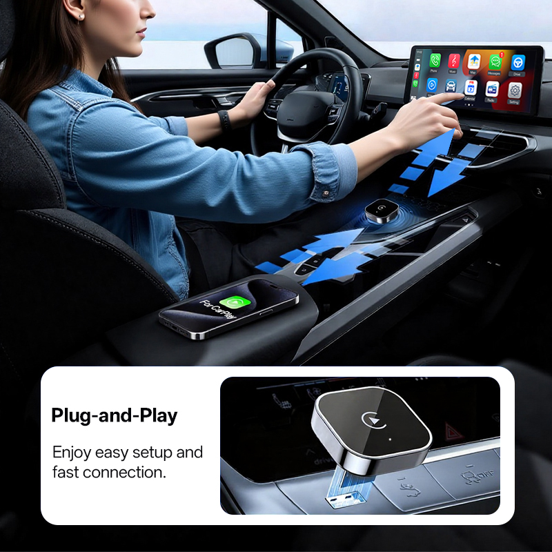 Bộ chuyển đổi tự động CarPlay & Android không dây 2 trong 1 có dây sang hộp thông minh không dây