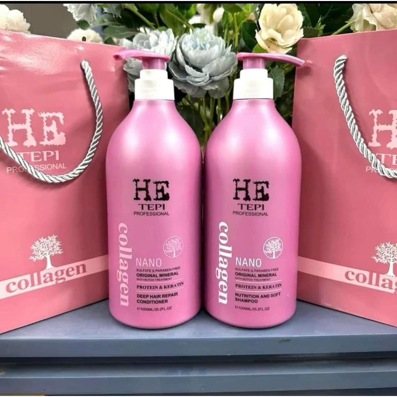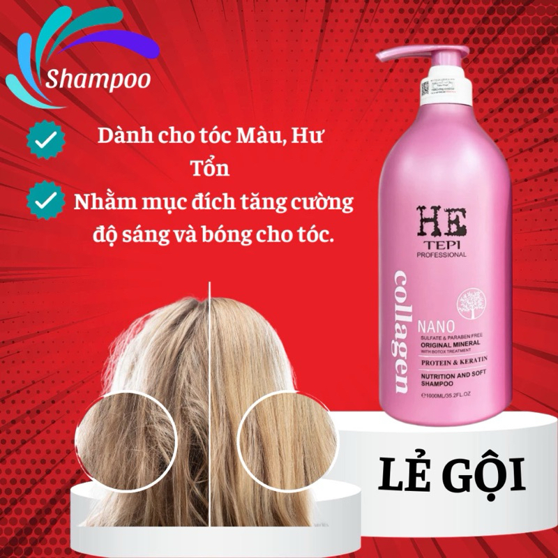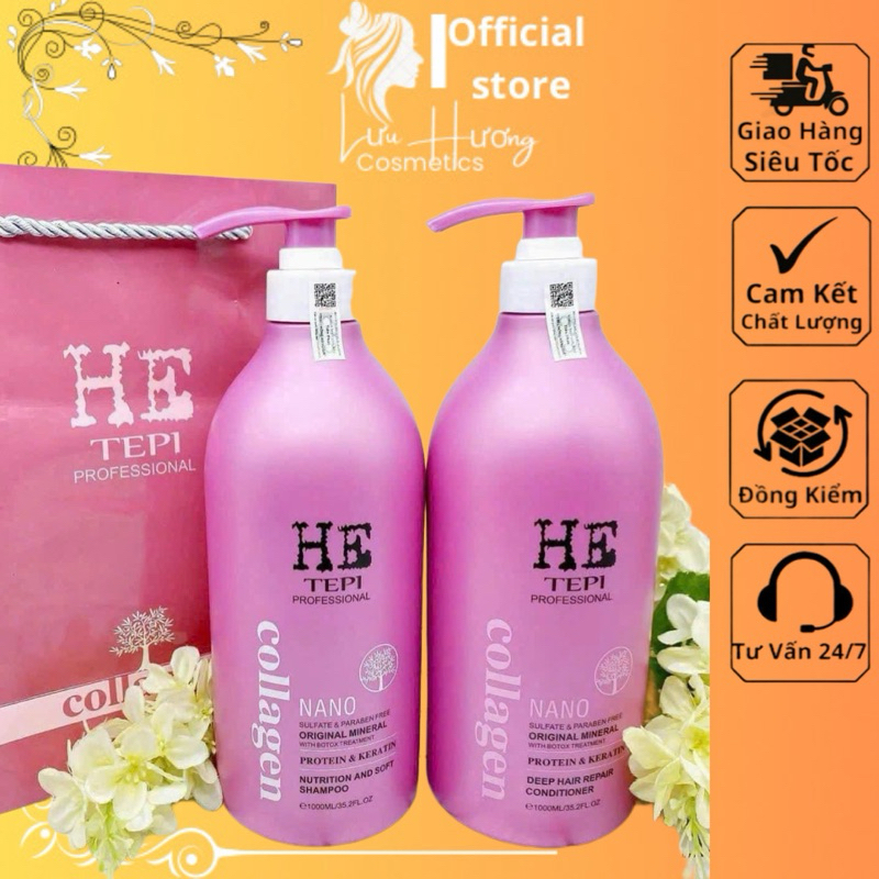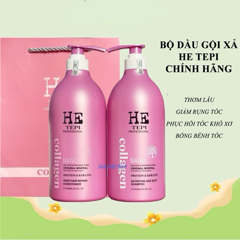 Dầu Gội Xả Collagen HE Tepi Hồng 1000Ml Mượt Tóc Hương Nước Hoa Thơm Lâu, Kiềm Dầu, Chống Rụng Tóc