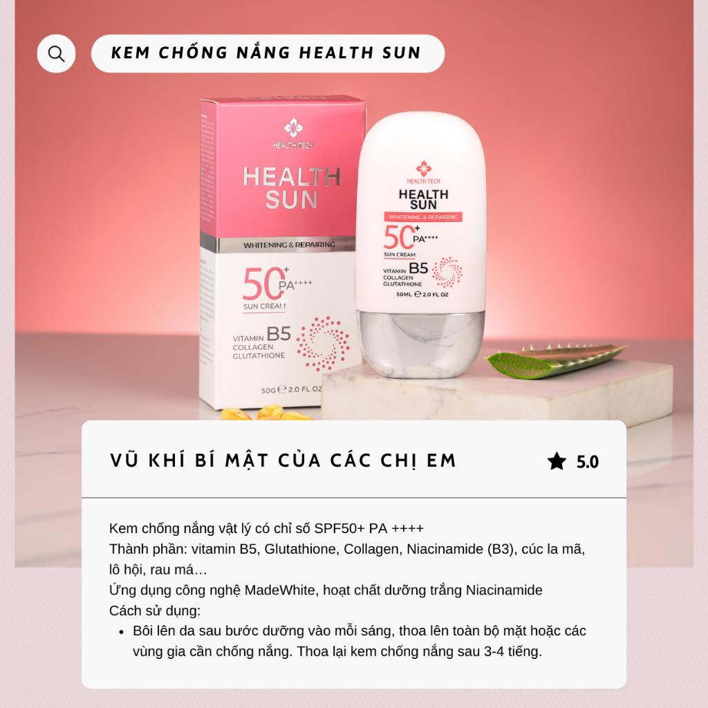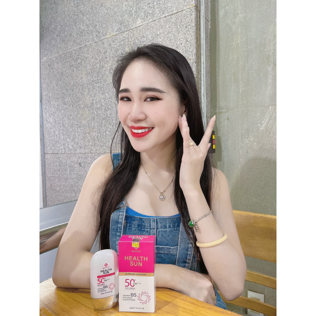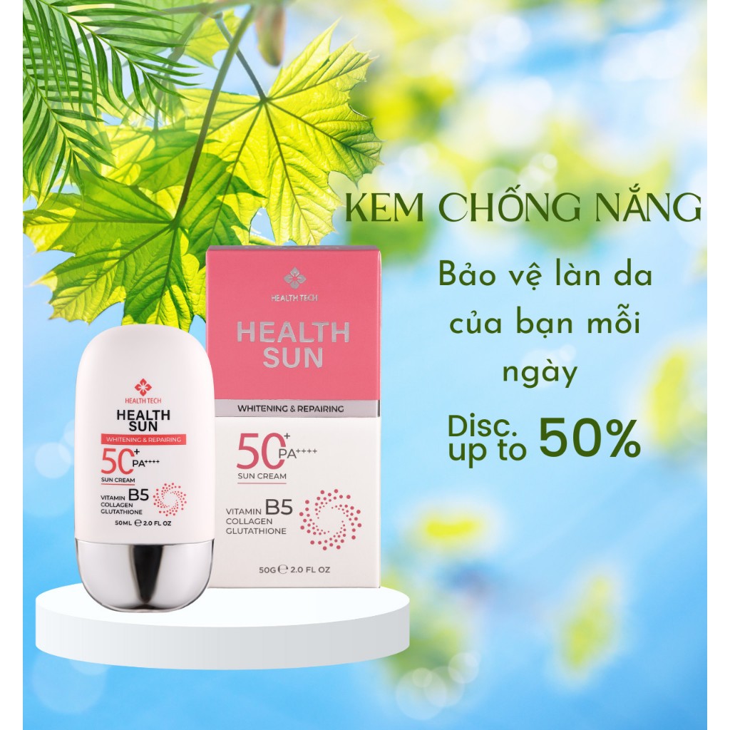 Kem chống nắng health sun nâng tone dưỡng trắng da kiểm soát dầu SPF50+ PA ++++ trẻ hóa làn da